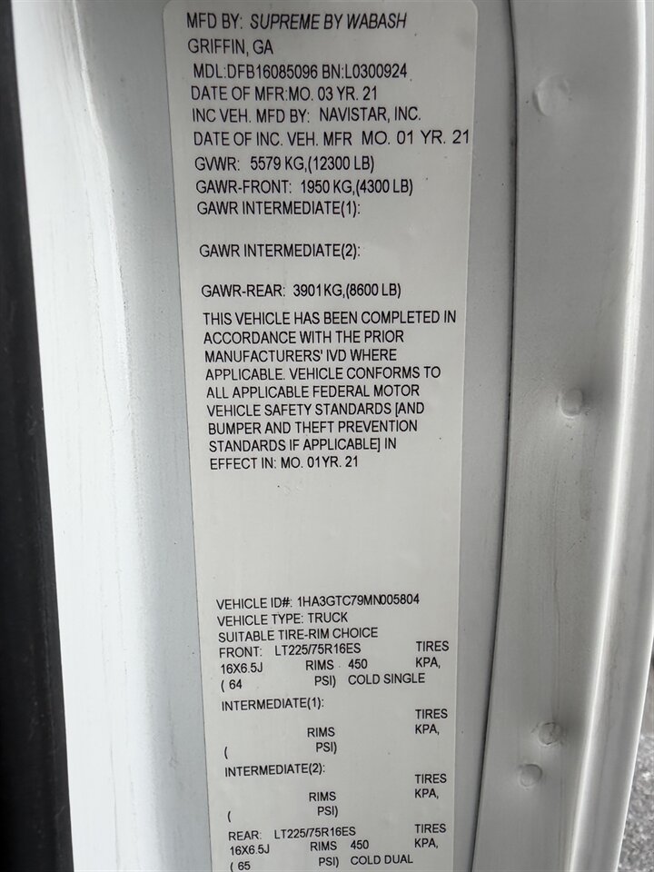 • VIN #: 1HA3GTC79MN005804
